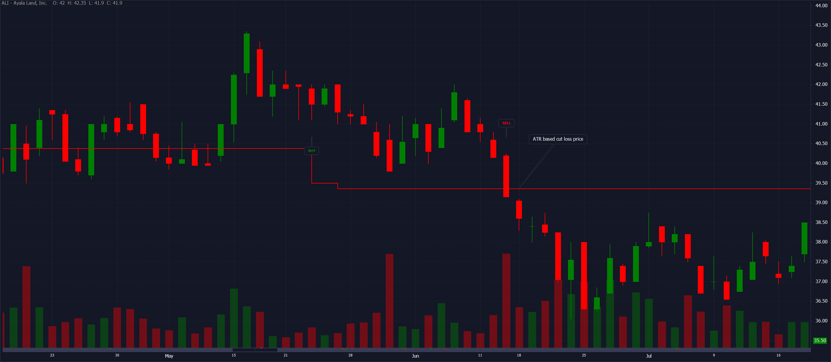 For some traders, they would sometimes put a hard stop as a cut loss. Example 5%, meaning whatever happens, if prices fall below 5% of their buying price, they would execute a sell order. A downside of this method is that it does not account for volatility, so for highly volatile stocks, the cutloss signals will keep on triggering.